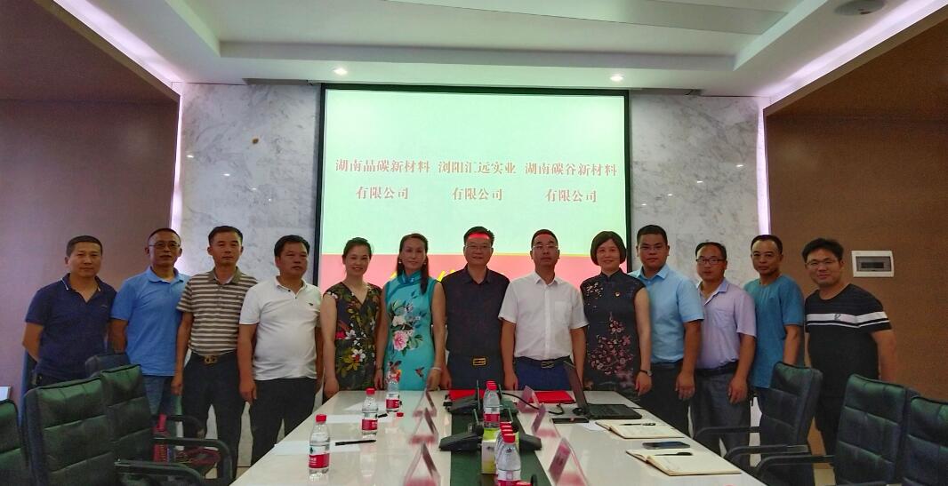 6月25日上午,湖南晶碳新材料有限公司、浏阳汇远实业有限公司、湖南碳谷新材料有限公司入园项目签约仪式顺利举行,晶碳公司董事长刘俊锋先生、碳谷公司董事长杨柳女士、汇远实业常务副总经理贺喜华先生、双方重要领导人及重要合作伙伴等出席仪式,共同见证签约仪式。