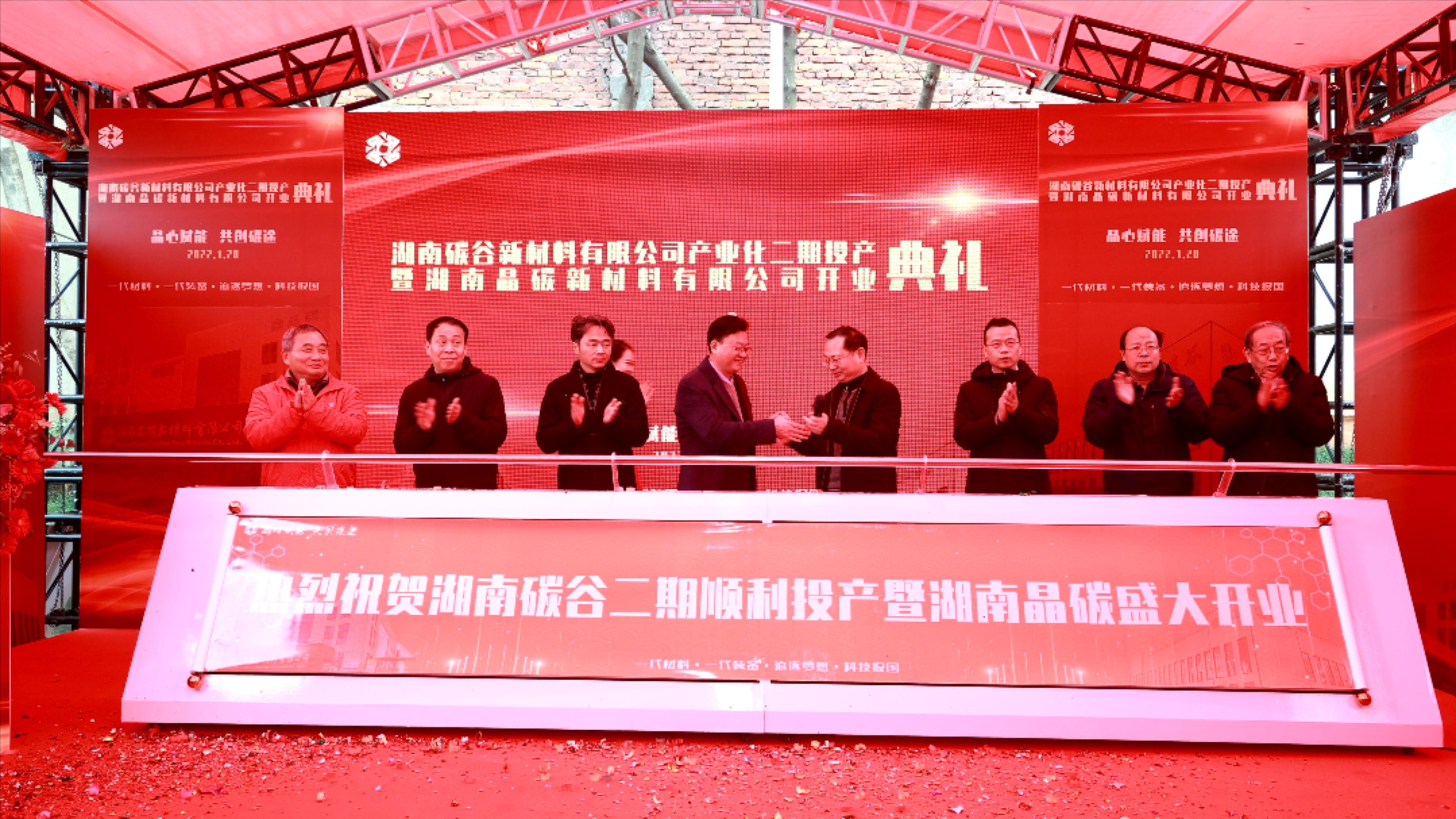 1月20日,湖南碳谷新材料有限公司产业化二期项目暨湖南晶碳新材料有限公司“高性能碳纤维复合材料产业化技术研究、生产制备”项目在国家级浏阳经济技术开发区举行开工仪式,标志着湖南碳基复合材料企业“湘军”方阵又添一员“猛将”。湖南省、长沙市、国家级浏阳经济技术开发区等有关部门和单位领导,行业专家、企业家代表出席开工仪式。