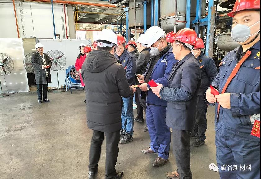 公司领导班子一大早来到员工岗位上,送新年祝福,刘总对碳谷同仁做新年寄语:2022年碳谷将持续秉承技术领先、加强推进军民融合、提高市场对碳谷认可度,大家齐心聚力,再创辉煌。