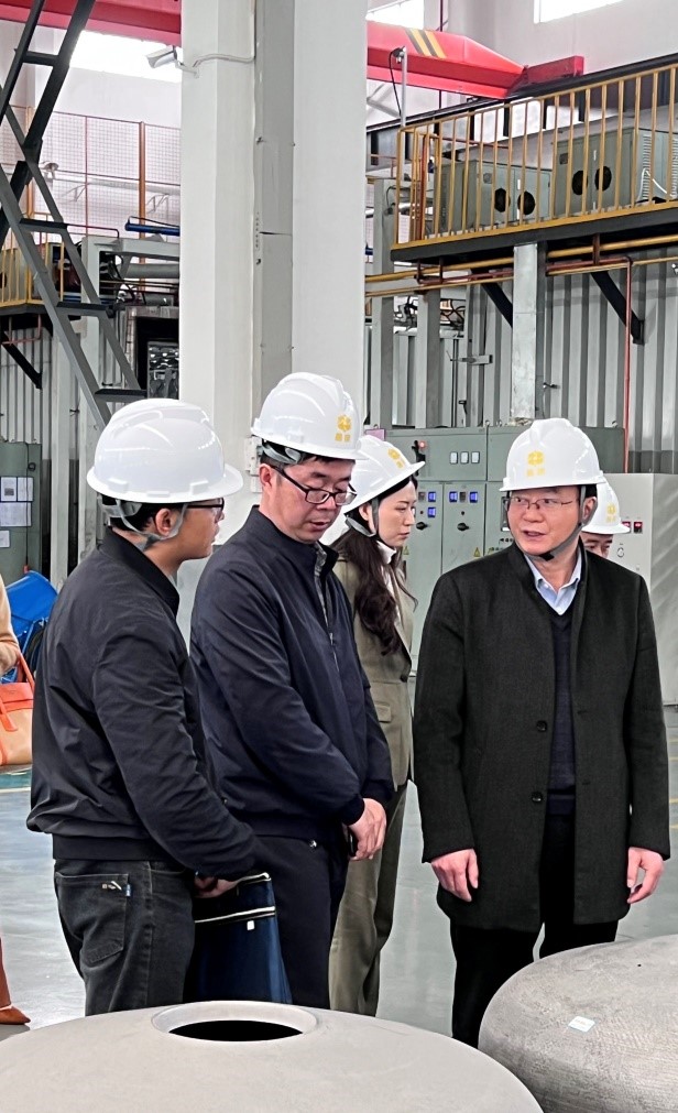 调研团一行首先来到生产一线进行参观,湖南碳谷、湖南晶碳董事长刘俊锋就公司产品结构、工艺流程等,向调研团的领导同志们做了详尽汇报。湖南碳谷、湖南晶碳以高效制备高性能碳/碳复合材料关键技术的研发,实现了原材料、生产装备、制备工艺三位一体的自主创新,致力于突破关键核心技术,攻克国外“卡脖子”品种,提高碳基新材料等产品质量,摆脱进口依赖,推进产业基础高级化、产业链现代化,实现了高性能、低成本、短周期的生产目标。湖南碳谷正在全方位铺开一条快速发展、研发投产的改革任务,打出了一套“三年三个目标”发展组合拳,推动公司和行业态势持续利好发展。
